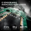 Em termos de desempenho, ela apresenta o sensor HERO 2 com até 44.000 DPI, uma taxa de polling de até 8.000 Hz, aceleração máxima de 88 G e rastreamento 888 IPS, combinando extrema precisão com capacidade de resposta ultrarrápida para microajustes e disparos rápidos. Com um peso em torno de 65 g e até 90 horas de duração da bateria, ele permanece leve, confortável e confiável durante longas sessões.